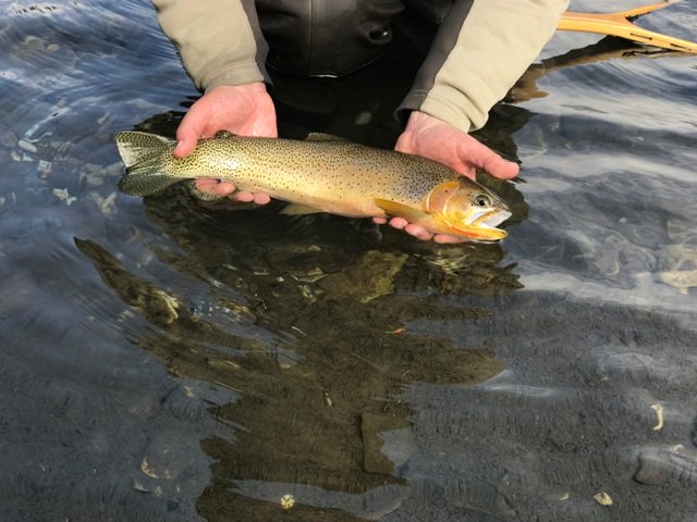 In Autumn with the Local October Caddis beginning to hatch in numbers the Life jacket Caddis was superb in faster water, along current seams and in riffles for pulling stunning cutthroats onto the fly. I fished the ever reliable soft hackle dry fly as my search and bring ‘em up fly over larger sections of river. The sight of a cutthroat trout rising slowly and deliberately to intercept a dry fly is one every fly fisherman should experience. These wild and native fish are one of the most free rising fish on the planet over a relatively short fishing season. Today I managed to get out and catch a brownie and say goodbye to the trout season. An Indian Summer will ensure some good dry fly fishing for grayling before we revert to the nymphing outfits. Kind Regards, Jonathan. |