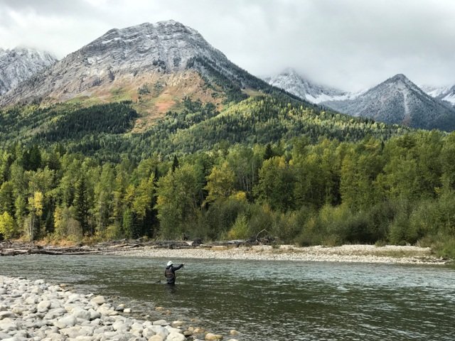 The Oldman river, Alberta He quickly started catching some great bullet bows on the black magic nymph. I caught well over 20 quality hard fighting wild rainbows. The Onstream-guide flies performed exceptionally well and the barbless hooks held some of the wildest stream fish on the planet with no problem at all. Early in the morning, before things warmed up I caught bows on the new TNT mini streamers, even though Blair mentioned that streamers had not been working very effectively. These small motile mini streamers provoked the required response quite quickly and I was soon landing bullets. Our next day we half recovered from Jet lag and had a curtailed 2 hours on the Crowsnest river due to near storm force winds. We retired a bit jagged after our first day but the forecast was for light winds for the next. We made our way to the famous “Gap” section of the Oldman River, Alberta. It was cold and snowing when we arrived. It was snowing when the river boiled with fish in a blue winged olive hatch. It was one of those rare hatches when fish rise in a clockwork pattern as groups of flies move in waves down the stream. We used a size 16 match the hatch olive and took every fish we covered at zero degrees Celsius, in a blizzard, in the middle of the rockies. It was a great experience catching those eastern slope cutthroat trout. We actually left a pool of rising fish in the end happy, and no longer needing to catch.