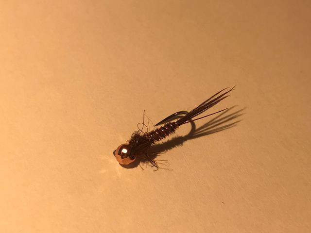 The top scoring fly thus far for the large ladies this season has been this size 14, picric dyed copperhead PTN on a size 14 Hends 120 with a 3mm copper faceted bead. This is not available on the website but is available to you subscribers at £1.50 per fly if you’d like to try them. Simply e-mail me jon@onstream-guide.com and I’ll send an invoice.